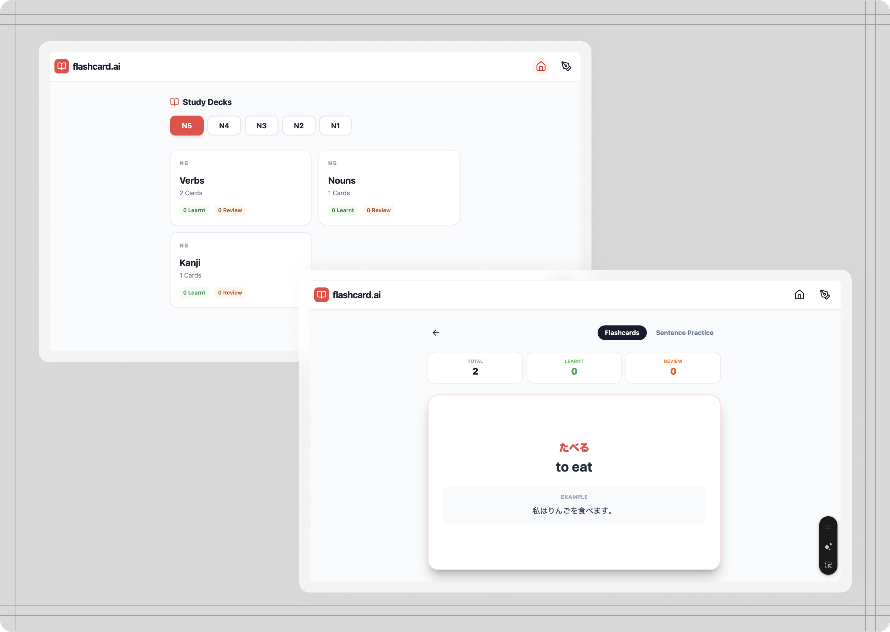 In my three years learning Japanese, I have realised that the best way to learn vocabulary is to actually put it to use. Sounds so obvious, right? Yet, it’s hard to find a tool that lets you do exactly this. Most flashcard tools focus on building decks and memorisation, yet all the time I spent building flashcard decks never translated into actual learning progress.
